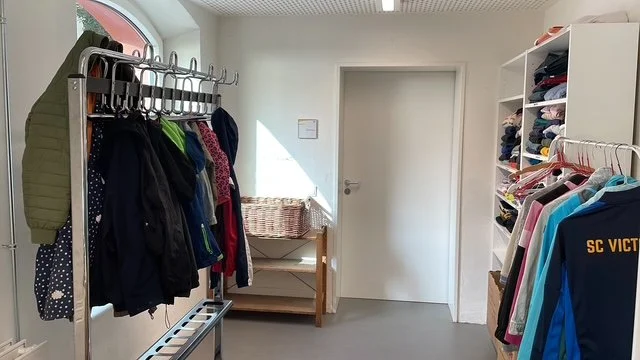 Was aussieht wie eine gutsortierte Kinderboutique ist in Wirklichkeit die Fundgrube der Schule. Dank der engagierten Arbeit von Frau Findseil ist seit dieser Woche alles geordnet und nach Kleidungsarten sortiert.