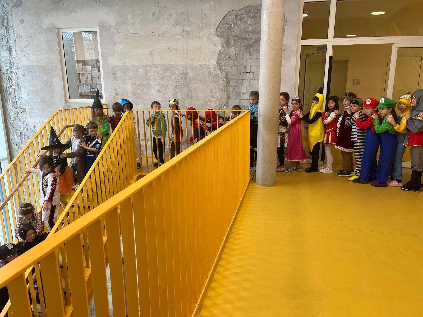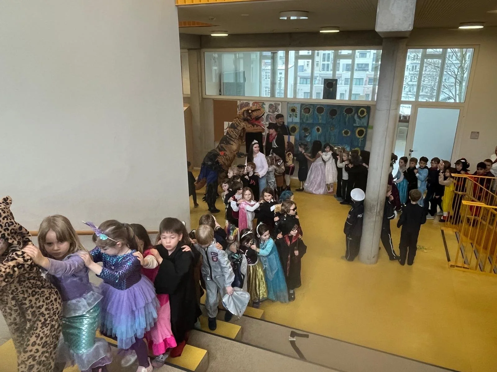 Am Freitag, 13. Februar fand unser jährliches Faschingsfest statt. In jeder Klasse herrschte buntes Treiben. Buffets mit tollen Beiträgen, gebastelte Dekoration und natürlich passende Musik und Spiele machten Vor- und Nachmittag zu etwas ganz Besonderem. Die Aula wurde zur Disko und in der Turnhalle konnte man sich bei einem Aufbau oder freiem Spiel so richtig austoben. Inzwischen ist die Polonaise durchs Schulhaus eine liebgewonnene Tradition, an der sich viele Kinder und Erwachsene gerne beteiligen.
